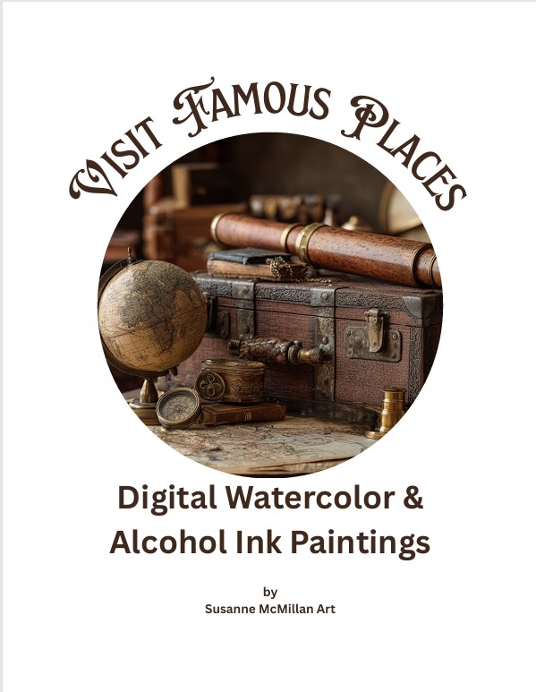 Curated Set of Digital Watercolor and Alcohol Ink Travel Paintings